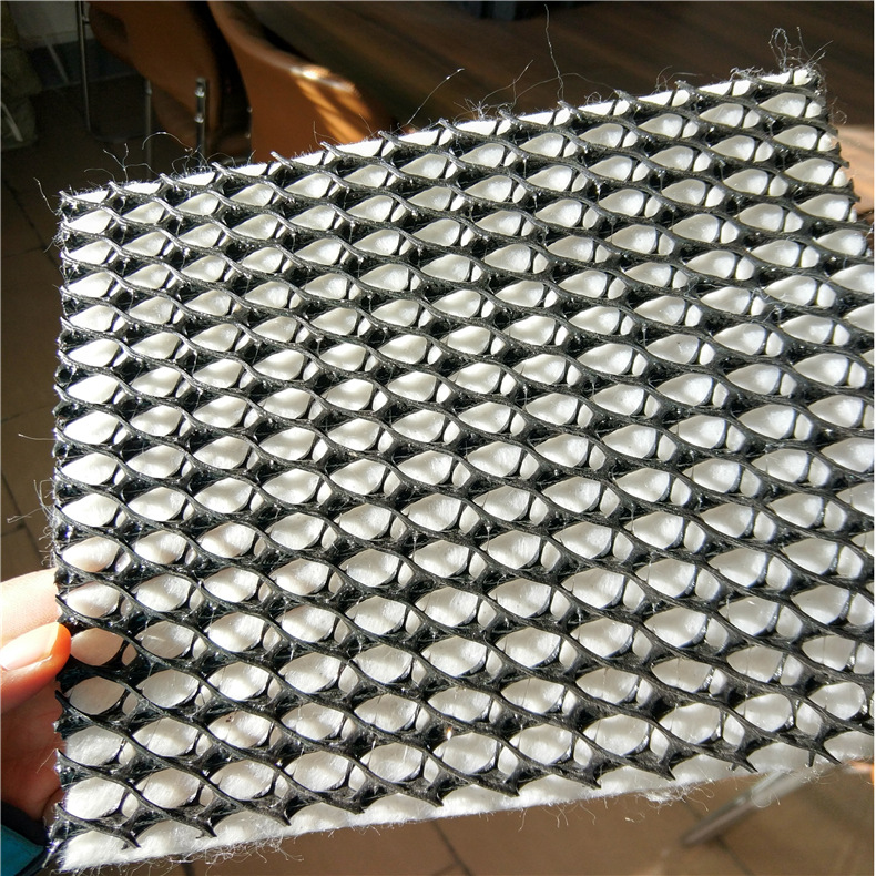 三維復合排水網(wǎng)是一種新型土工合成材料,組成結構是一個三維的土工網(wǎng)芯,兩面都粘有針刺穿孔無紡土工織物。三維土工網(wǎng)芯包括一個厚的垂直肋條,以及頂部和底部各一條斜置的肋條,能夠迅速地排出道路的地下水。自身還有一個孔隙維護系統(tǒng),能在高荷載下阻斷毛細水。同時,它還能起到隔離和地基加固作用。
